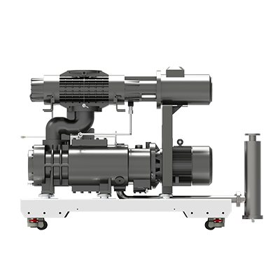 水冷設(shè)計(jì):干式螺桿泵采用水冷設(shè)計(jì),提高冷卻效率,降低真空泵溫度;真空度高,抽速大:前級泵為干式螺桿泵,采用專為其開發(fā)的轉(zhuǎn)子型線,型線密封好,變螺距轉(zhuǎn)子,結(jié)構(gòu)更復(fù)雜,精度更高,可高速運(yùn)轉(zhuǎn),轉(zhuǎn)子無接觸,無需潤滑介質(zhì),極限真空度高。在接近極限真空度的過程中,抽氣速率會不斷降低,這時作為主泵的羅茨泵發(fā)揮其優(yōu)勢,為機(jī)組提供抽速,在高真空區(qū)域也可保證較大抽速,能耗較小。