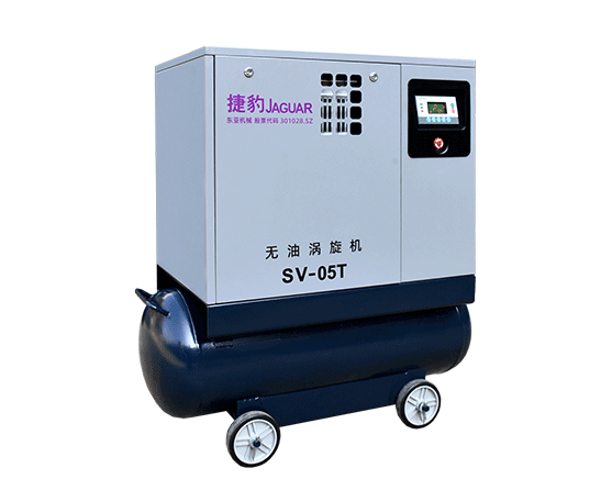 捷豹工頻無油渦旋機(jī)分別為SV系列、SV-05T(有無氣桶之別),用戶可根據(jù)工況需求自行選擇。SV系列擁有以下特點(diǎn):零配件少、無易損件、使用壽命長(zhǎng),維護(hù)非常簡(jiǎn)單便捷。相較于有油壓縮機(jī),無需添加潤滑油。